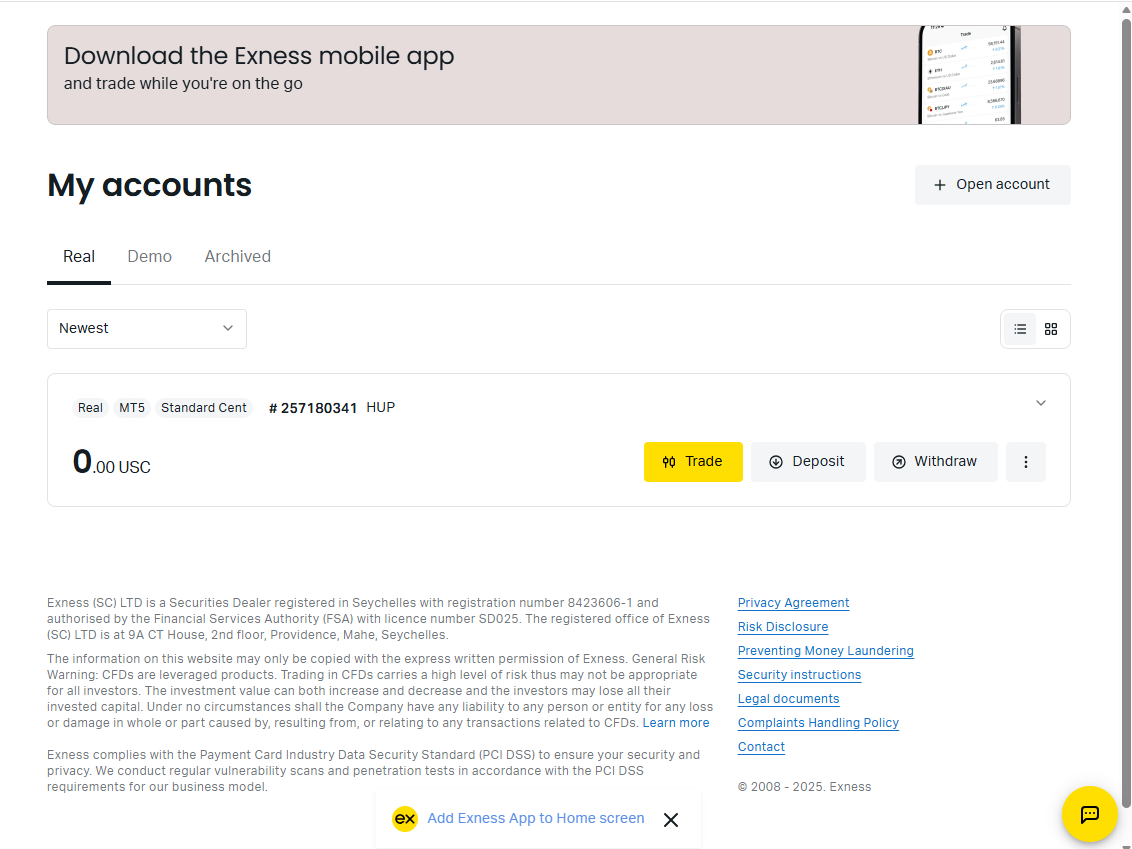 Navigate to Funds > Deposit Funds, choose your preferred deposit method, and then input the desired deposit amount(recommended your deposit equal Master a for copy trading. If master balance is 1000 USD, your balance need equal) and currency.